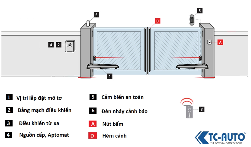Cuối cùng là lắp đặt thiếu thiết bị bảo vệ. Ở đây cụ thể là cảm biến an toàn & Aptomat ( 4 & 5). Thiếu cảm biến an toàn rất dễ dẫn tới cánh cổng va chạm với vật cản trong quá trình đóng mở. Điều này có thể làm hư hỏng mô tơ và gây nguy hiểm nếu va chạm với con người.