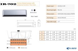 Cảm biến hồng ngoại chủ động IF-702 sử dụng công nghệ mới tiên tiến của Nhật Bản. Cho phép phát hiện các vật thể đứng im hoặc di chuyển một cách chính xác.